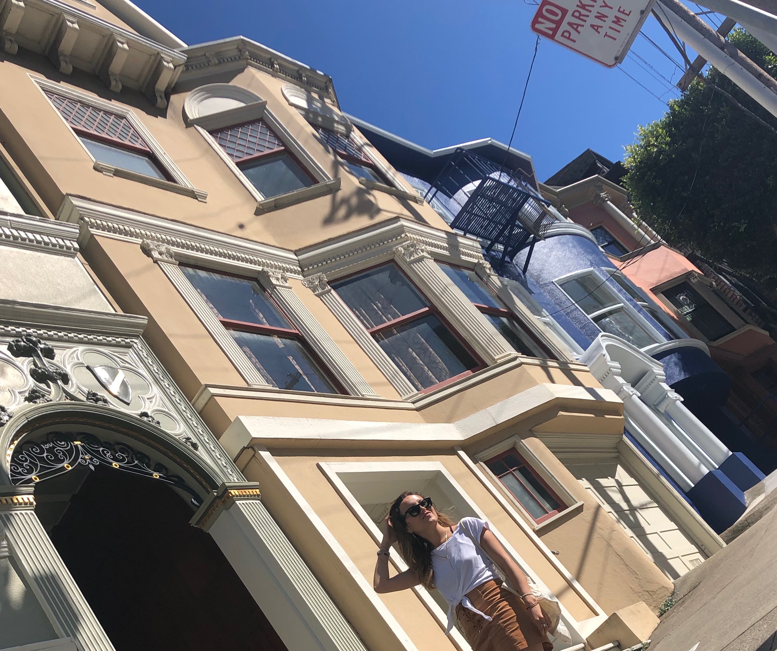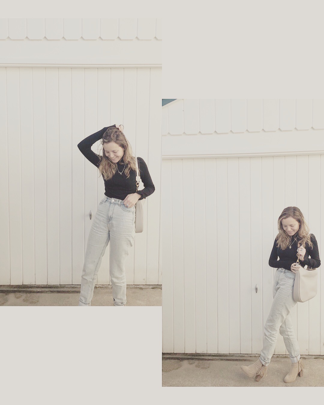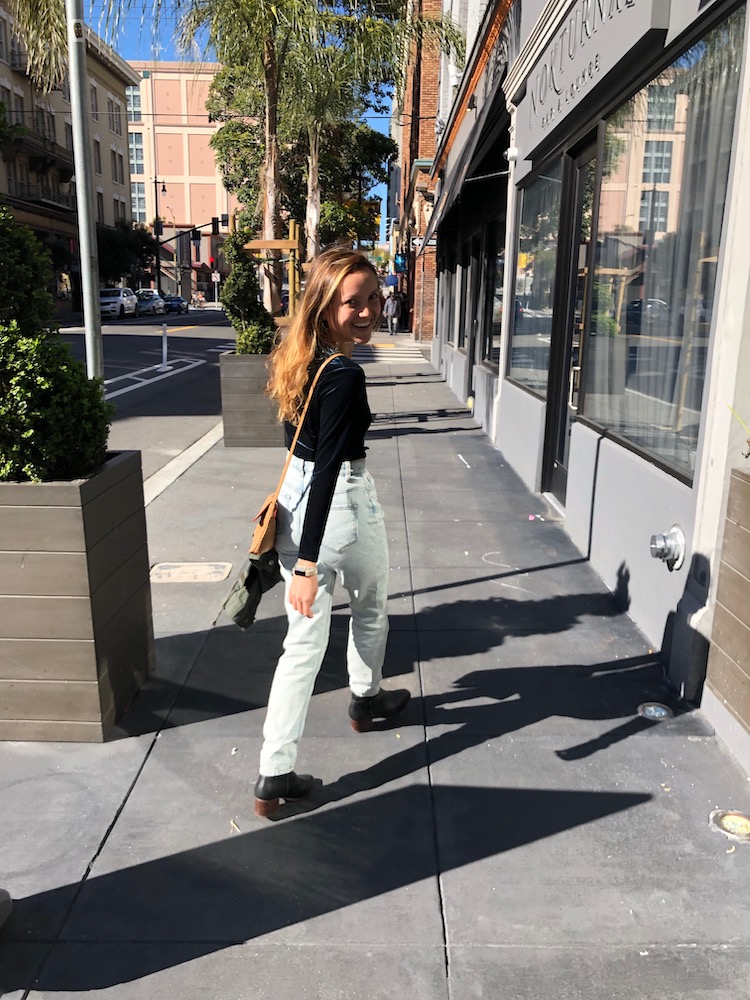 Rooftops in the city are always a good idea, especially in San Francisco. Since I like one of a kind pieces, I wore this mom jeans with sequins and my Zara jacket. Absolutely love monochromatic looks.