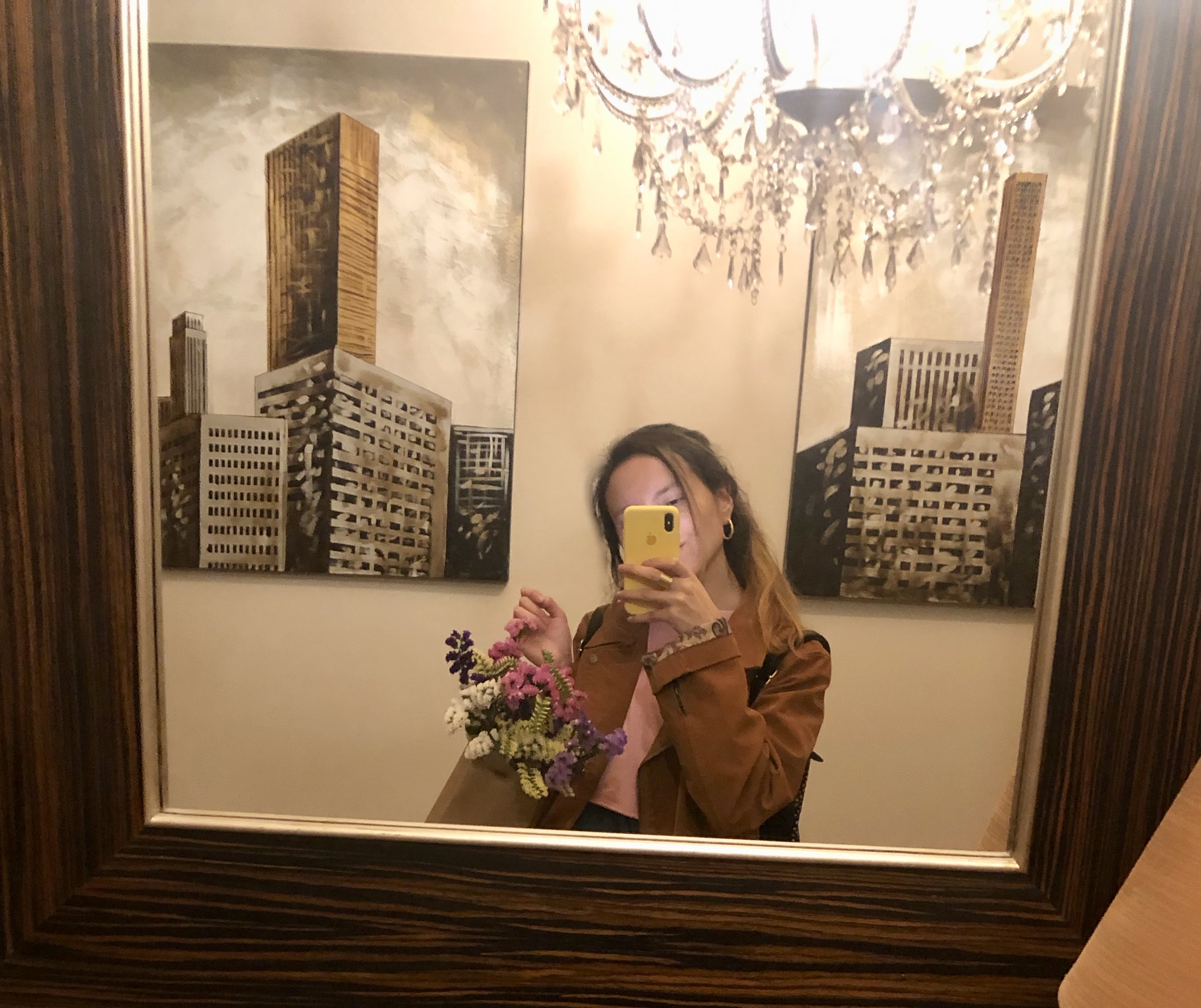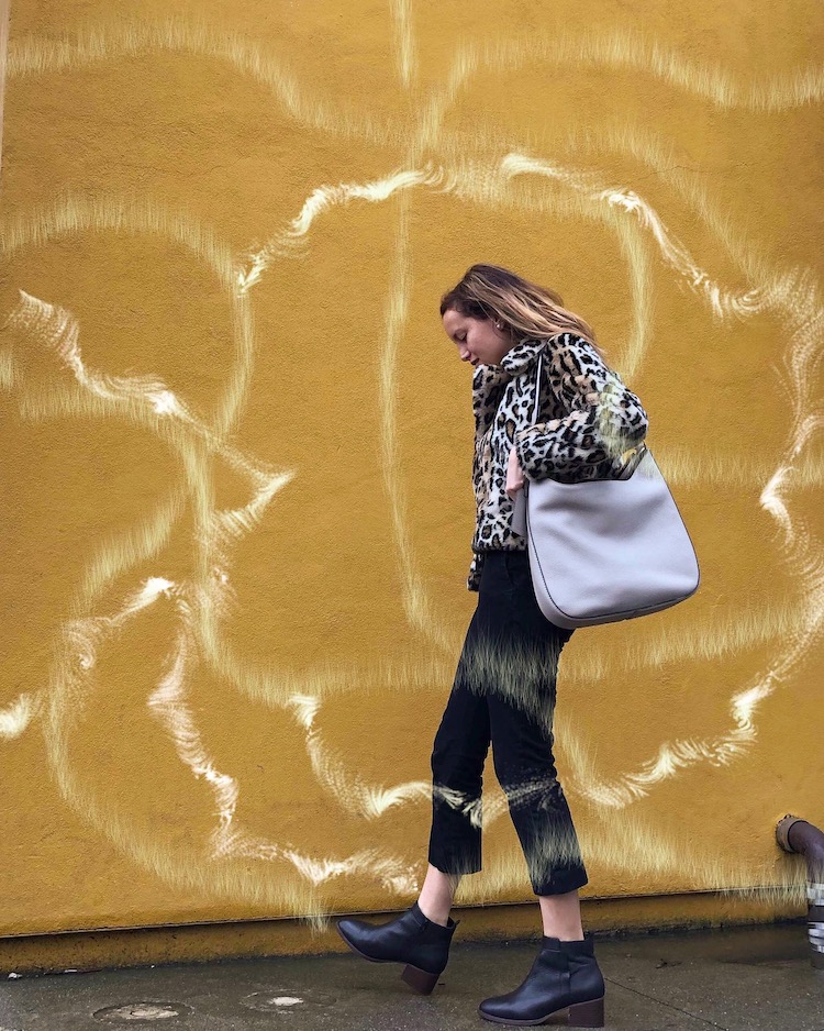 This is my favorite wall in Berkeley, the colors are so vibrant and they remind me of Andy Warhol’s modern art. Here, I’m wearing a colorful jumpsuit from Anthropologie and a leather jacket from Forever 21 (which everyone thinks is from a designer since the embroidery is so unique!) I’ll definitely keep it for a long time. If you don’t own a jumpsuit you should definitely buy one, they are so versatile, comfy and classy.
