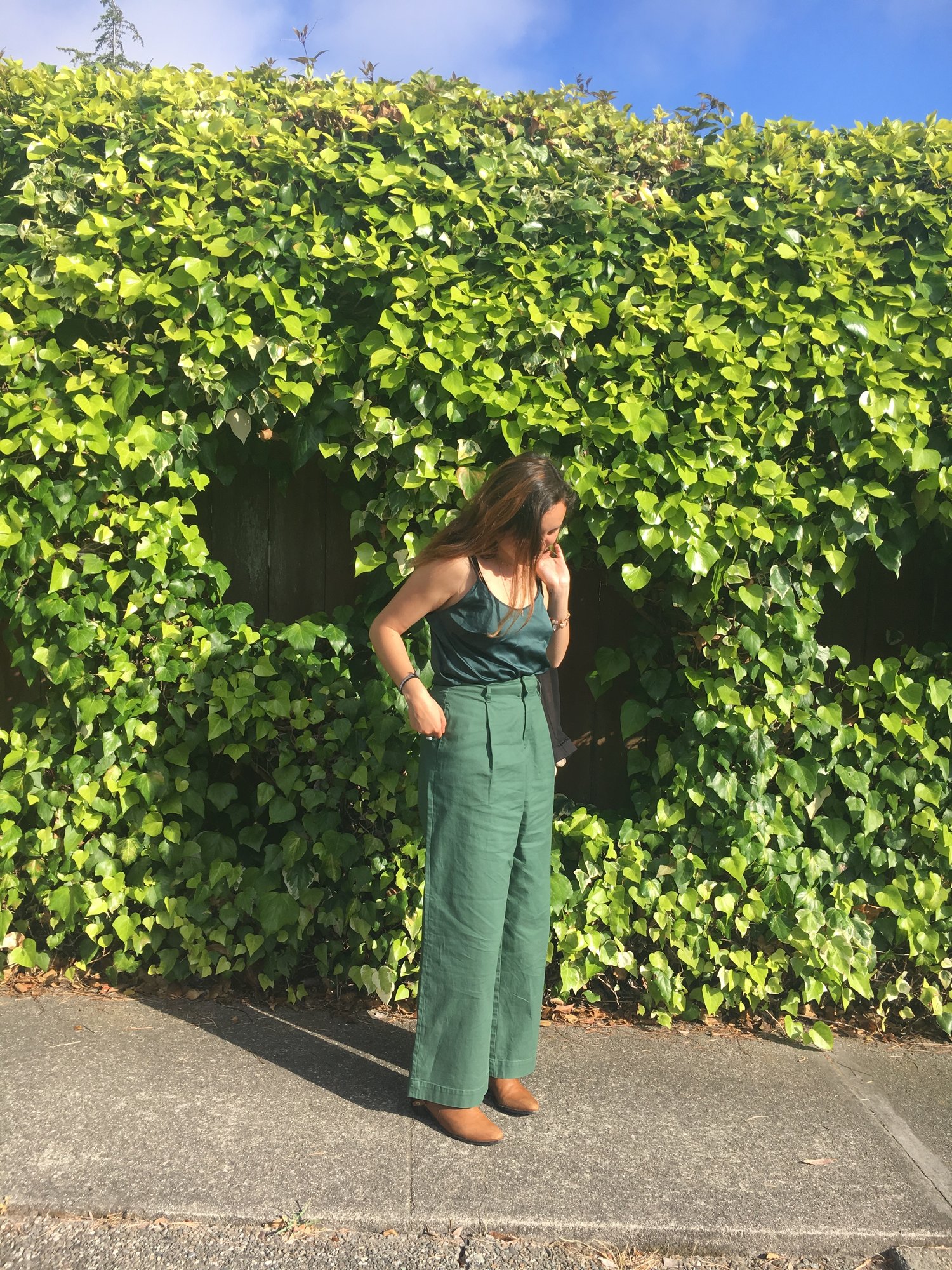 I really enjoy all the green in this picture!!! I honestly love wearing one colored outfits, in this case I mixed 2 different fabrics, which made the look more versatile.