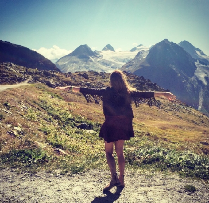 Here, I’m wearing one of my go to looks: Leggings and a black jacket. Also loving the perfect sunset in the background.